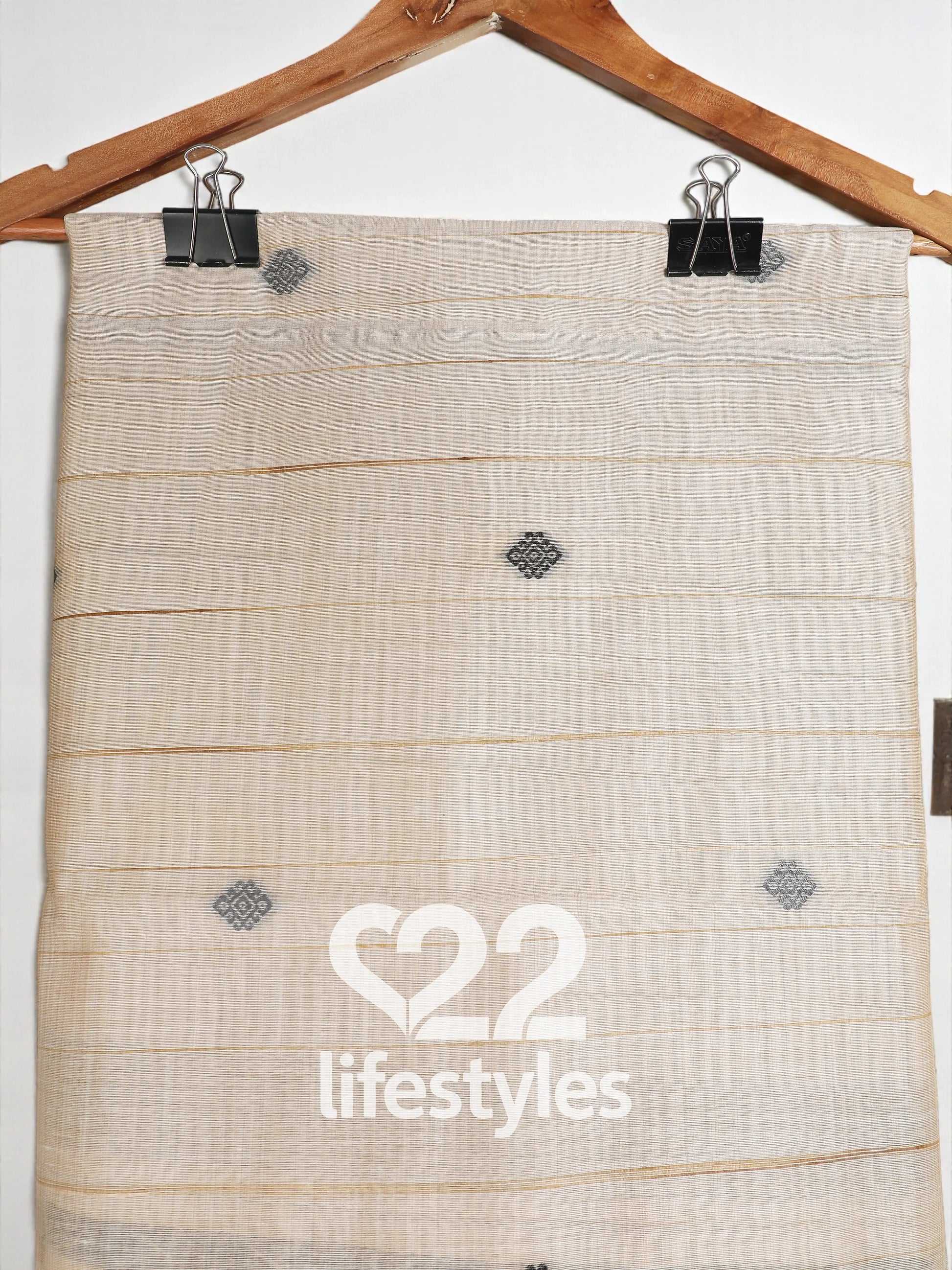 Dupatta: Beige Maheshwari, striped borders, butis, soft drape, approx. 2.4–2.5 mtr