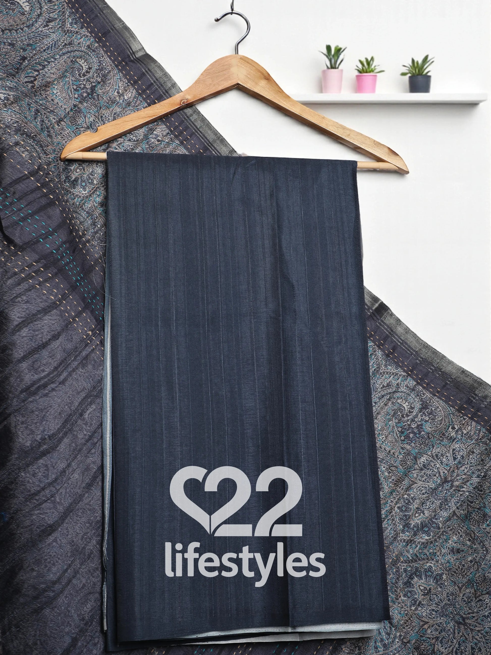 Bottom Material: Solid midnight blue Tussar silk for versatile tailoring