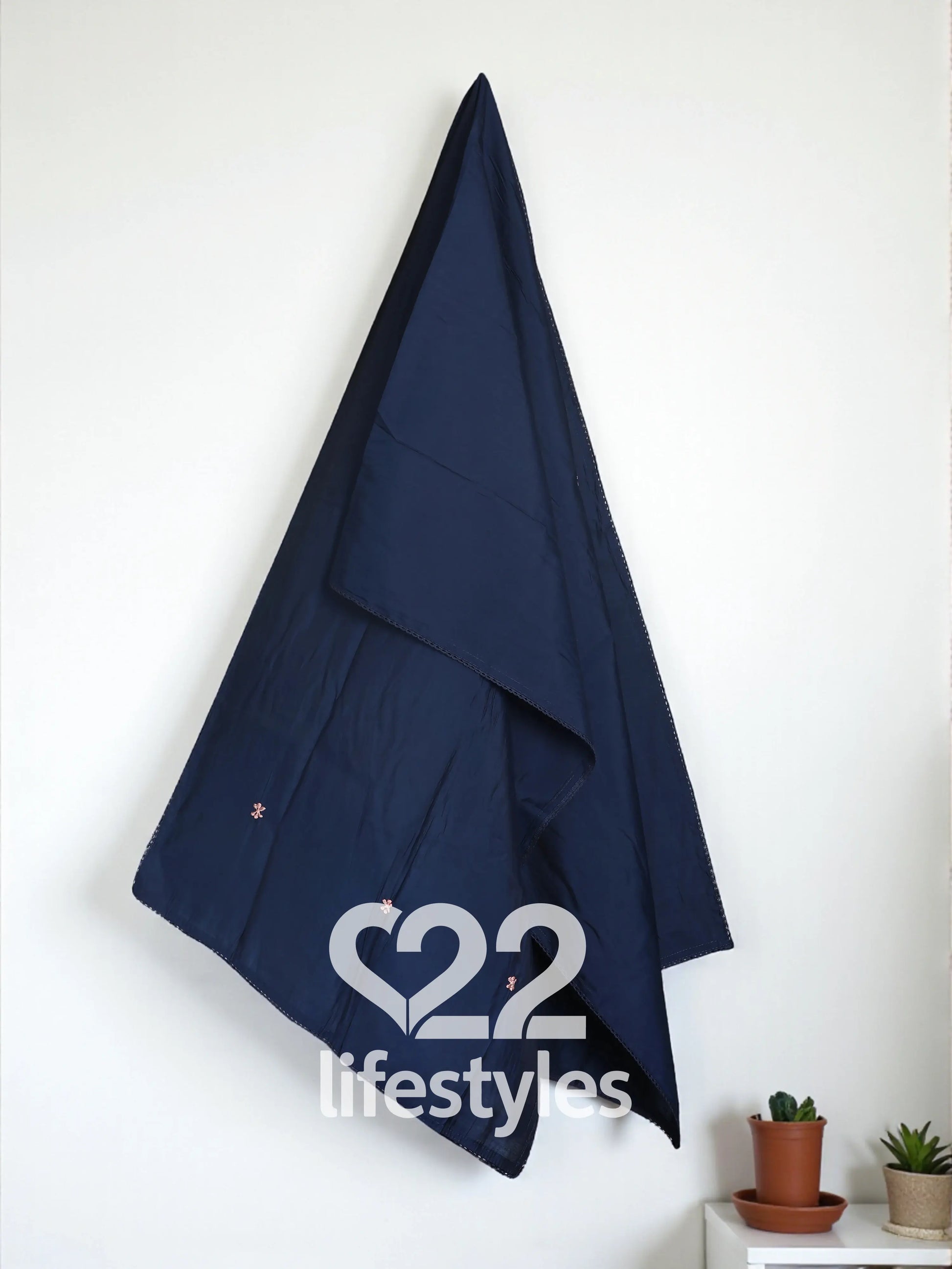 Dupatta: Muslin, midnight blue with embroidered accents and subtle border (approx. 2.5 mtr)