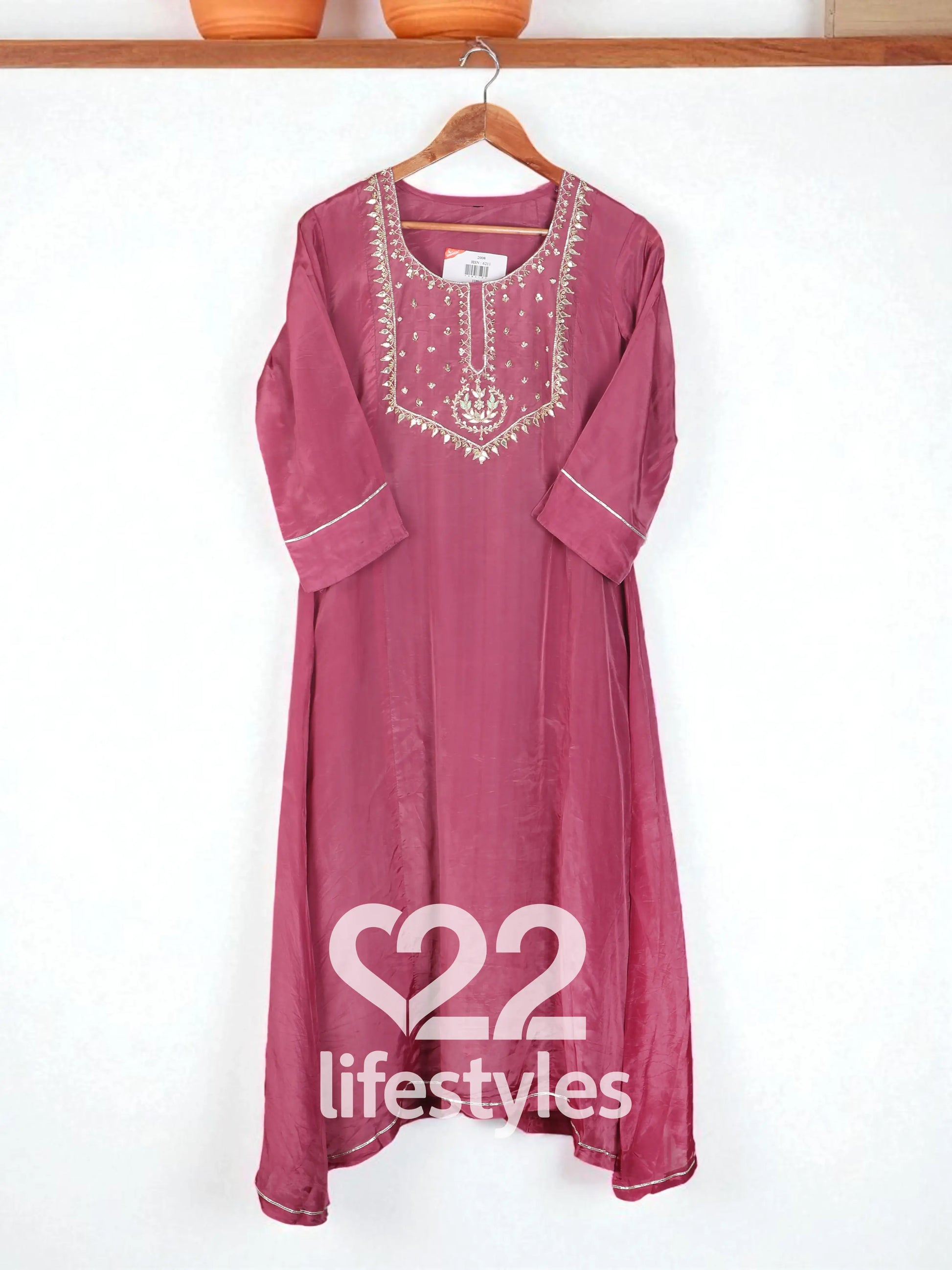 Top Work: Detailed thread embroidery on the yoke; rest in solid mauve