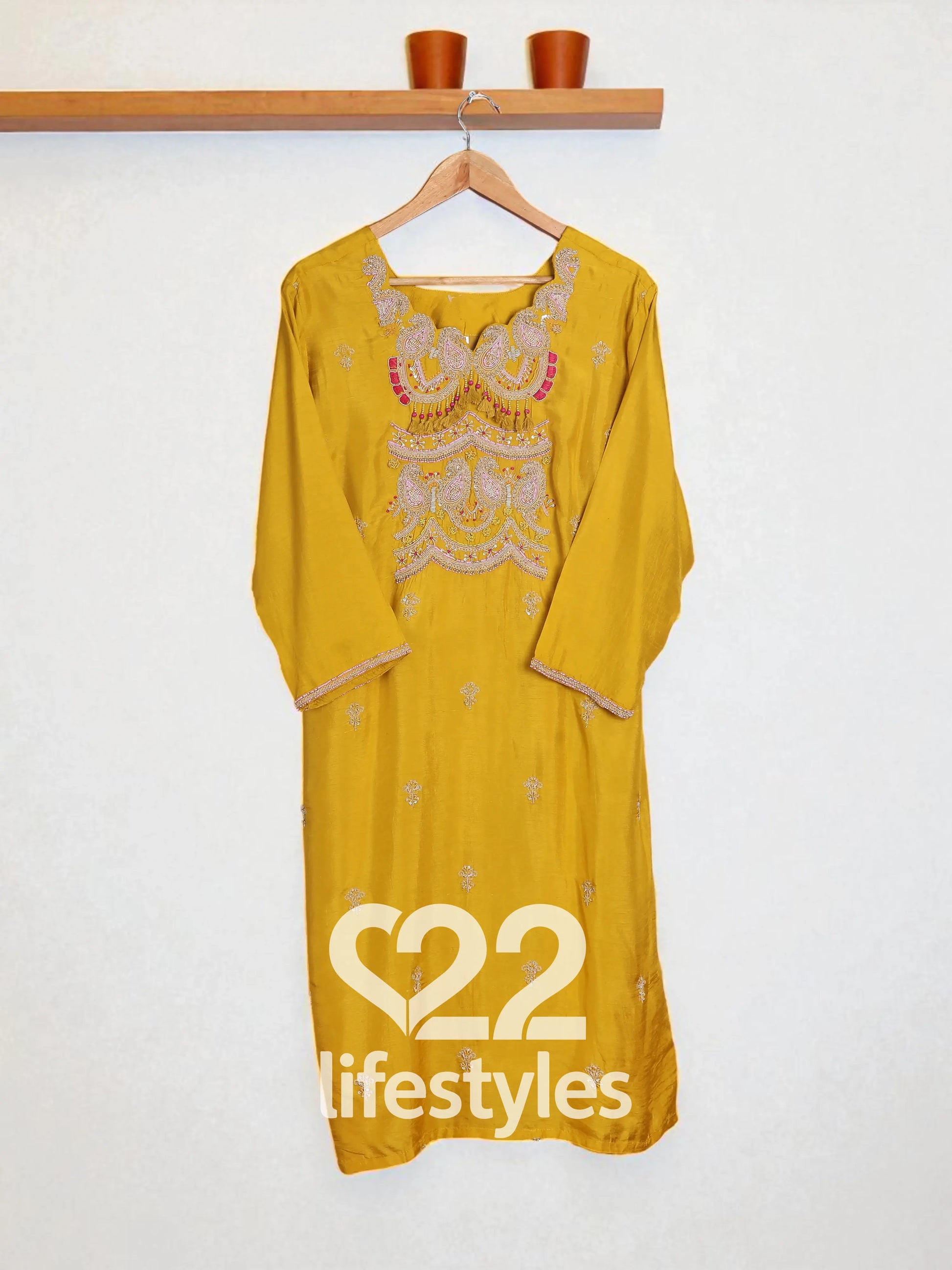 Color: Mustard yellow set with tonal and multicolor embroidery